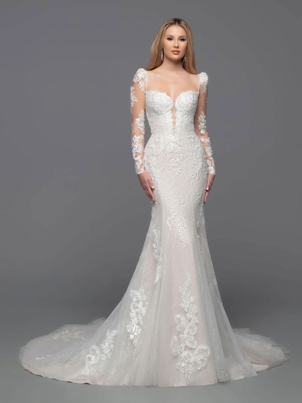 Ballgown with ivory lace, silver thread and sequins over ivory tulle, champagne tulle, dust matte lining, skin unlined bodice with Chantilly lace, long sleeves.