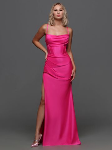 Floor Length front left open slit spaghetti straps Spandex Shimmer Dress.