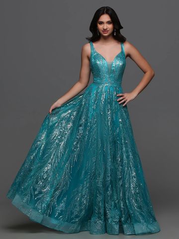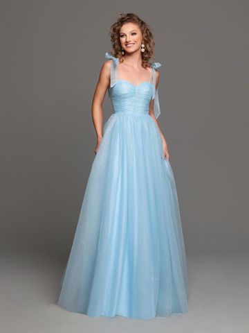 Ice Blue A-Line Sparkle Tulle Gown with Corset back